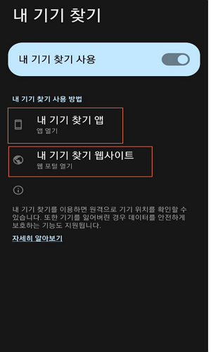 3. 내 기기 찾기에 들어오시면 내 기기 찾기 앱 밑에 내 기기 찾기 웹사이트를 눌러주세요. 앱 설치가 좀 민망할때 사용 가능합니다.