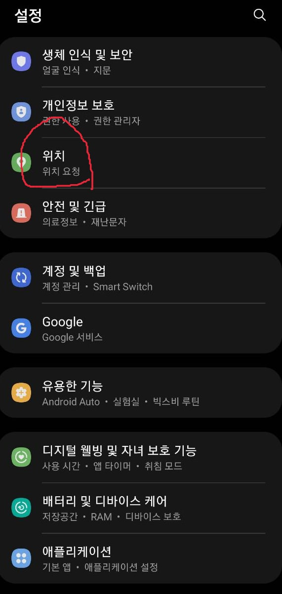 1. 설정에 들어가 줍니다. 그리고 위치에 들어가주세요