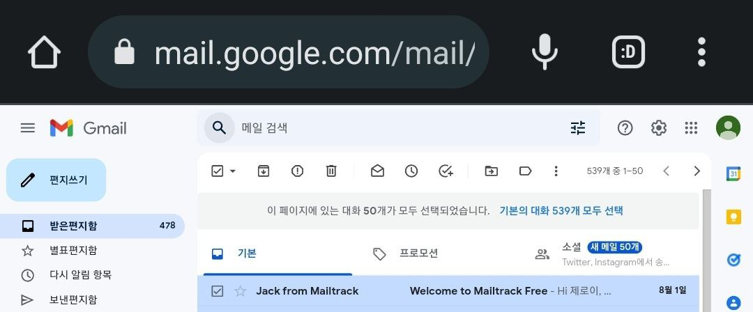 모바일에서 지메일 전체삭제를 하려면 데스크탑 모드를 사용하셔야합니다. 아직까지는 그냥 어플이나 앱 상태에서는 지우는 방법이 따로 보이지 않습니다. 이제 모바일버젼도 설명드리겠습니다.