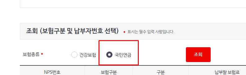 국민건강보험 사이트 > 보험료 납부/조회 > 보험료 납부 바로가기 > 하단 국민연금 선택