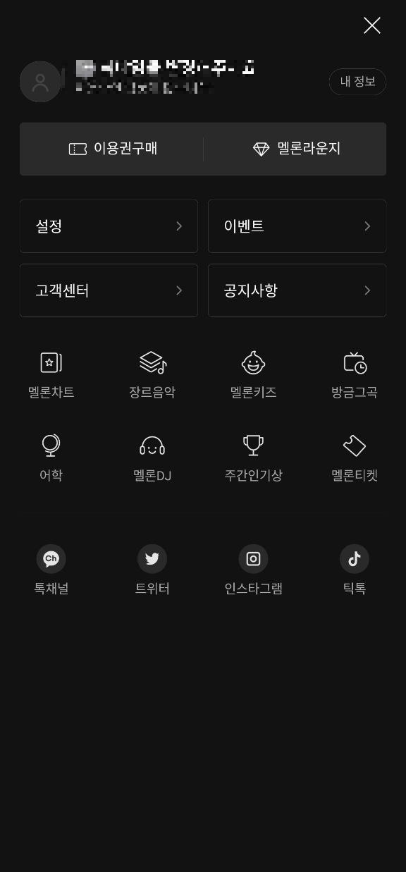 1. 모바일 멜론 어플에 접속해줍니다. 그후 우측 상단에 삼선을 클릭해줍니다.클릭후에 내정보에 들어가주세요