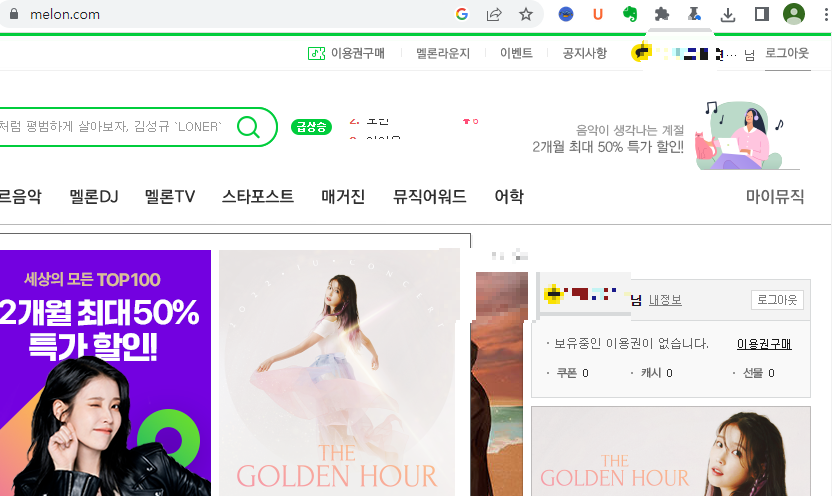 1.멜론 홈페이지에 접속해서 로그인을 합니다. 그후에 내정보에 들어가줍니다.
