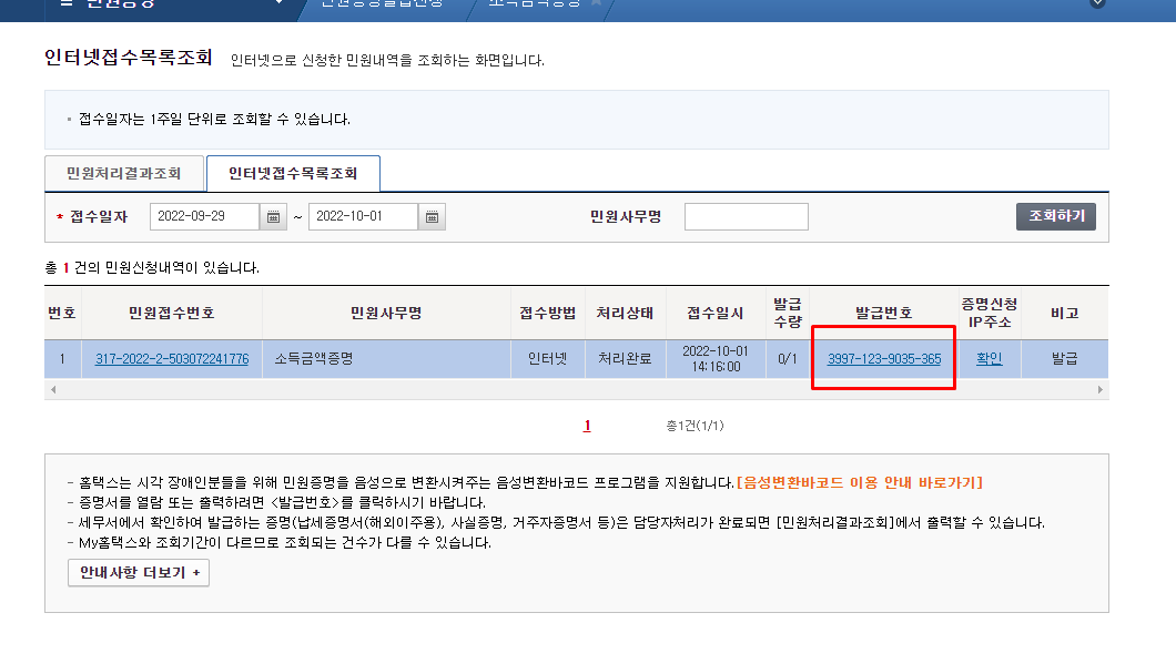 소득금액증명원 발급 기간