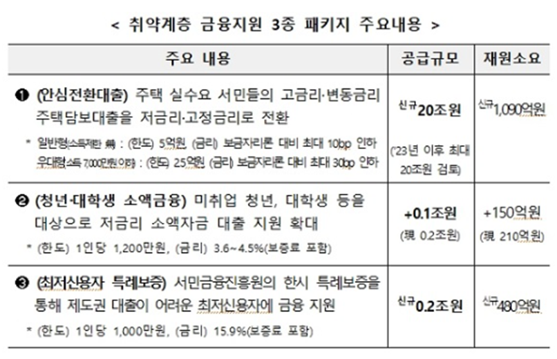 취약계층을 위한 금융지원 패키지