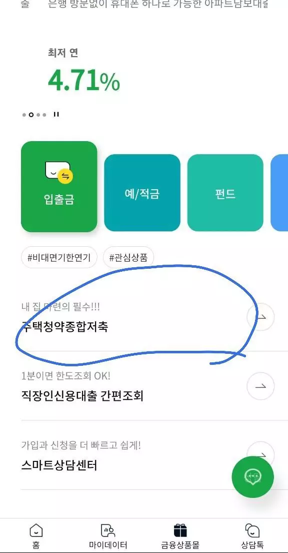 2. 주택청약종합저축항목을 눌러서 가입해줍니다. (약관과 인적사항 매달 거치액을 설명하면 가입완료입니다.)