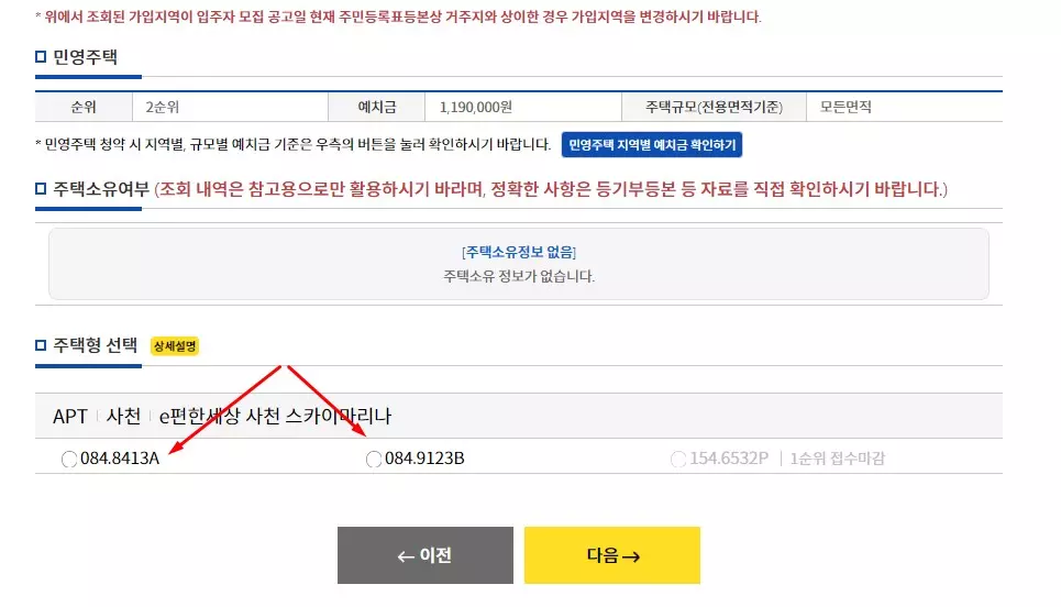 - 청약홈에서 로그인을 하고 원하는 주택을 선택후 청약 신청