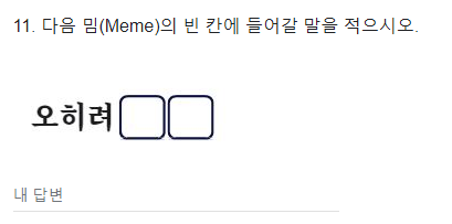 구글 문서로 되어있으며 바로정답을 볼수 있습니다. 총 20문항이고 각 문항당 5점입니다. 당신의 MZ력을 테스트 해보세요