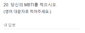 당신의 MBTI를 알고 있으면 정답인데 모르는 저는 오답인걸로.... 나 90년대생인데 왜 모르지...
