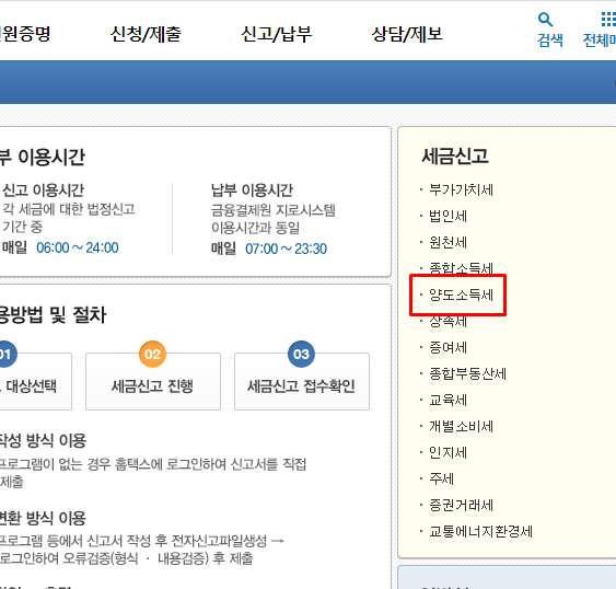 양도소득세를 신고하는 방법은 크게 두가지 인데요. 홈택스로 하는 방법과 관할 세무서에서 하는 방법이 있습니다.