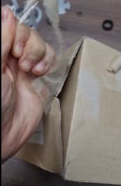 - 테이프가 위로 올라온 부분을 찾아서 그부분과 박스의 모서리 부분을 눌러주는 것이 포인트입니다.