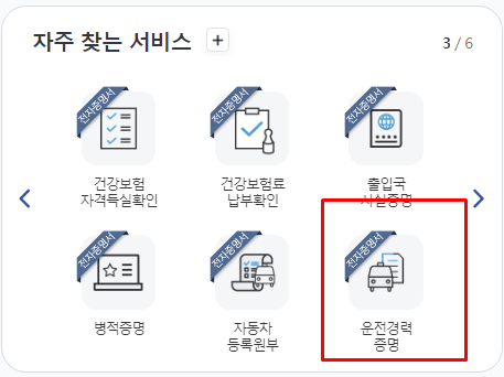 1. 메인화면에서 운전경력증명항목을 찾아 클릭합니다.